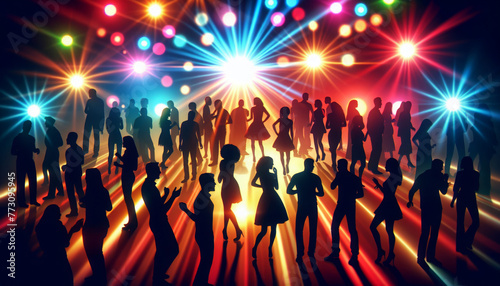 people, party, dance, disco, silhouette, dancing, music, crowd, vector, concert, woman, illustration, club, fun, night, entertainment, nightclub, group, light, celebration, rock, design, show, dancer, girl