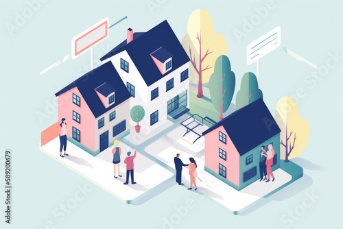 People Invest Money in Real Estate Property. House Loan Rent and Mortgage Concept.