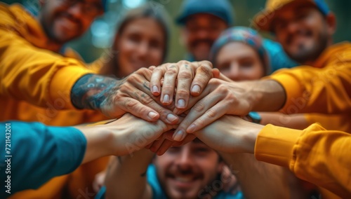 people lifting hands holding hands together on a platform