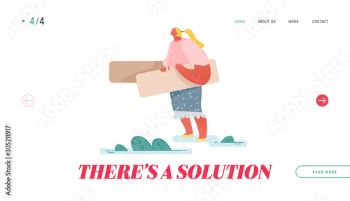 People Playing and Assembling Puzzles Website Landing Page. Woman Holding Huge Wooden Bricks. Family or Friends Leisure and Spare Time, Joy and Relax Web Page Banner. Cartoon Flat Vector Illustration