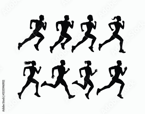 People Running Silhouette Collection Vector Template