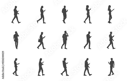 People walking with smartphone svg, Person walking with smartphone silhouette, Man walking with smartphone svg, Woman walking with smartphone svg.