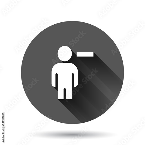 People with minus icon in flat style. Staff vector collection illustration on black round background with long shadow effect. Human circle button business concept.