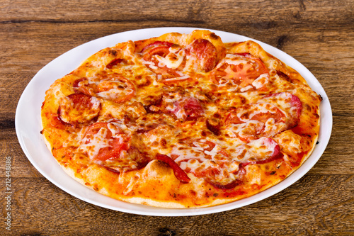 pizza, pepperoni, food, sausage, italian, salami, slice, fresh, homemade, fast, meat, white, cheese, hot, isolated, tasty, meal, crust, mozzarella, delicious, baked, snack, dinner, tomatoes, spicey, unhealthy, dough, background, eating, sauce, pepper, junk, cooked, top, view, round, vegetable, lunch, cookery, portion, melted