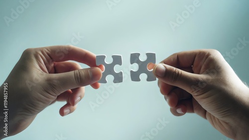 Perfect Connection: Close-Up of Hands Aligning Puzzle Pieces in Harmony