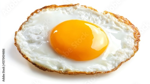 Perfect Fried Egg with Golden Yolk on White Background Still Life