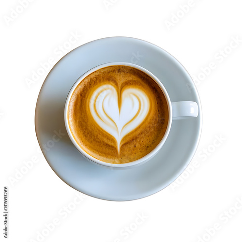 Perfect Heart Latte Art – Photorealistic Top-Down Coffee Cup Image.