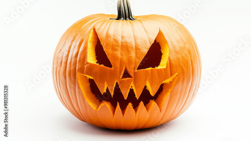Perfectly Carved Jack-o'-Lantern with Traditional Face on Pure White Background