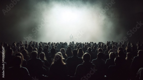 audience, performer, stage, fog, light, music, event, entertainment, theatre, concert, crowd, emotion, expression, anticipation, atmosphere, drama, sound, show, spotlight, people, gathering, life events, visual, scene, silence, moment, artistic, creativity, interaction, performance, sharpened, energy, passion, contrast, ambience, oneness, connection, projection, inspiration, artistry, celebration, storytelling, engagement, presentation