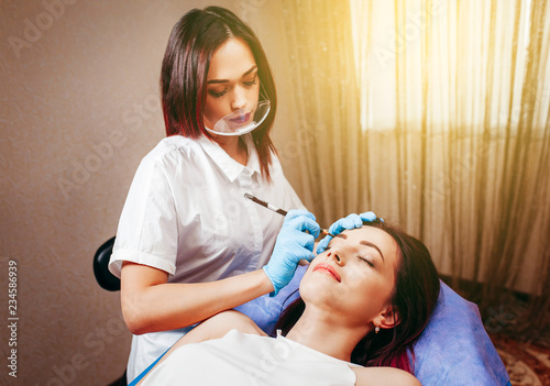 apply, applying, beautician, beautiful, beauty, blond, care, closeup, cosmetic, cosmetician, cosmetologist, cosmetology, equipment, eye, eyebrow, face, facial, female, girl, glove, hair, hand, head, instrument, laser, lifestyle, lip, luxury, machine, constructed, make-up, medicals, model, neck, needle, permanent, portrait, professional, salon, skin, skincare, spa, tattoo, tool, treatment, up, white, woman, young