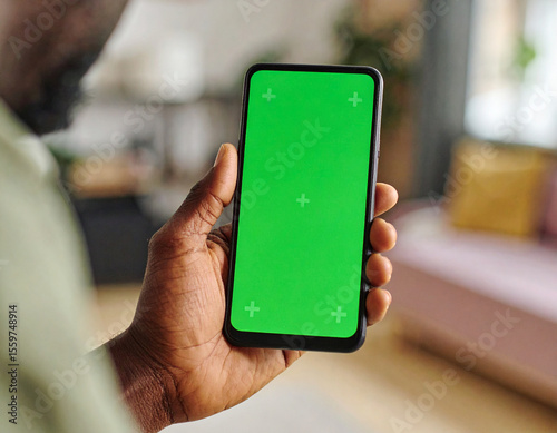 Person Holding Smartphone with Green Screen Mockup for App Presentation