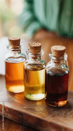 bottle, oil, surface, three, glasses, fill, colourful, display, wooden, honed, heal, scent, season, wood, cap, harvest, herbal, test, ampoule, wellness, home, extract, tincture, product, process, drug, liquid, floral, label