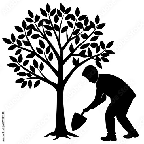 silhouette, environmental conservation, shovel, tree, vector, leaf, nature, design, tree branch, illustration, plant, autumn, drawing, season, art, forest, spring, wood, leaf, green, symbol, growth, summer, vignetting, ecology, set, fall