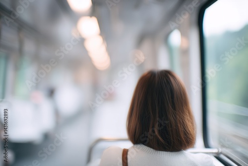 person rides public transport background out of focus creating serene scene minimalistic with ample copy space