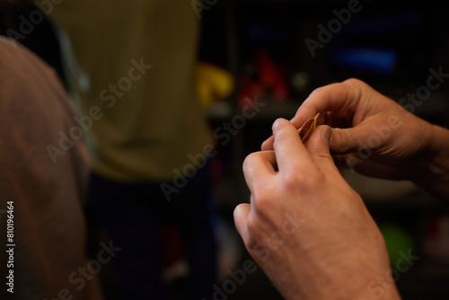 Person taking out blank note with good luck wish from fortune cookie, mockup