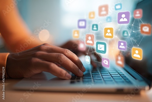 laptop, computer, keyboard, technology, digital, online, cyberspace, network, wi-fi, datum, software, application, device, screen, virtual, cyber, cloud, wireless, communication, social, media, networking, message, chat, post, share, like, comment, follow, profile, icon, symbol, connection, interaction, community, global, contact, conversation, hand, typing, using, working, browsing, searching, connecting, person, user, finger, business