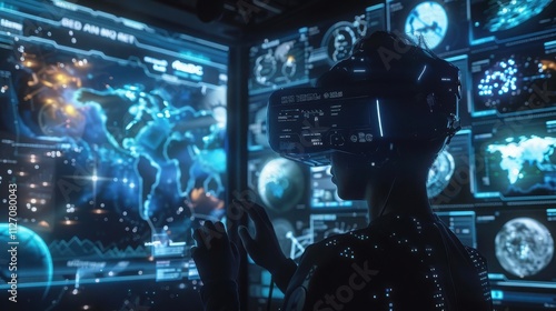 person, headset, virtual, reality, technology, datum, display, screen, futuristic, interface, digital, information, analysis, monitoring, control, system, network, global, earth, map, chart, graph, graphic, computer, science, future, innovation, progress, modern, advanced, software, hardware, intelligence, artificial, visual, user, life events, simulation