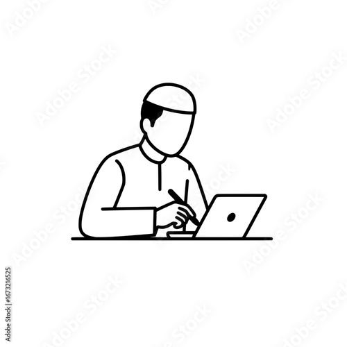 person, men at work, student, user, on, using, tablet, digital, technology, electronic, device, hand, line, outline, minimal, monochrome, black, white, modern, flat, workspace, office, communication, connection, business, learning, education, reading, screen, minimalist, silhouette, icon, online, connectivity, creative