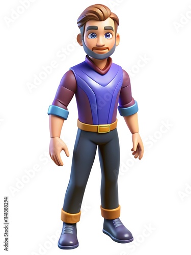 Personaje de juego masculino 3D aislado sobre fondo blanco, cuerpo completo, diseñado para proyectos de juego