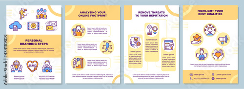 Personal branding steps brochure template. Flyer, booklet, leaflet print, cover design with linear icons. Vector layouts for presentation, Influencer annual reports, advertisement pages