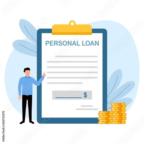 Personal loan agreement document in flat design on white background.
