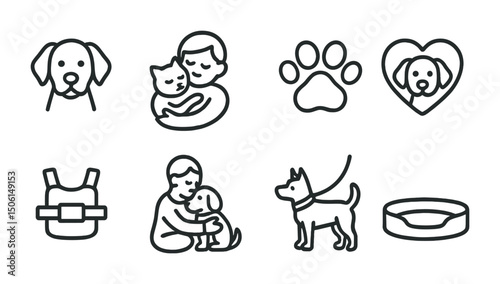 pet, animal, outline, flat, solid, line, icon, set, vector, graphic, symbol, digital, veterinary, grooming, cat, puppy, kitten, paw, nubes, leash, collar, adoption, pet store