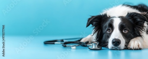 clinic, dog, stethoscope, banner, promotion, website, design, blue, black, white, pet, health care, animal, lying, vet, veterinary, service, collie, canino, cute, puppy, border collie, portrait, shetland sheepdog, border, breed, sheepdog, papillon, mammal, domestic, fur, sitting