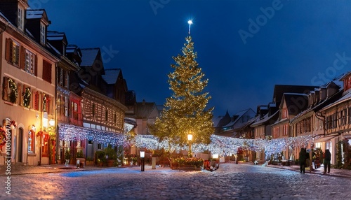 night, festive, holiday, seasonal, christmas decoration, cosy, snow-covered, winter landscape, charming, inviting, joyful, merry, new year, traditional, holiday spirit, vibrant, bokeh, christmas tree, cheerful, peaceful, tranquil, winter scene, quebec