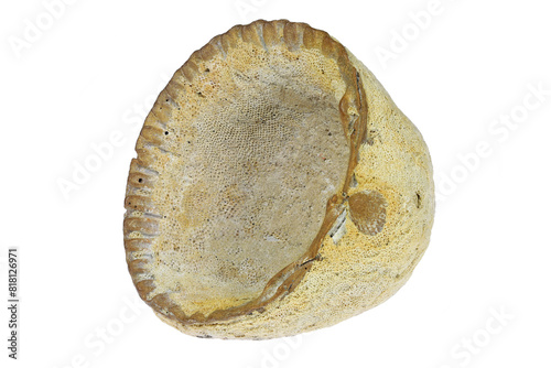petrified common cockle from Vlissingen, Netherlands isolated on white background