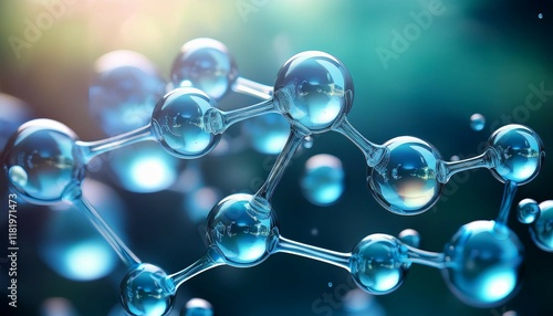 pfas molecule close up shimmering aqua bubbles on blurred background