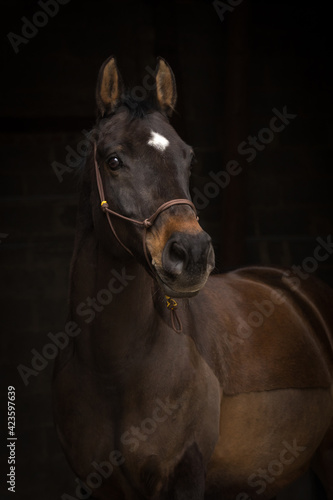 Pferdeportrait vor dunklem Hintergrund