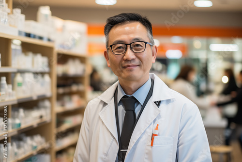 pharmacy, person, coat, medicine, apothecary, pill, adult, smile, woman, clinic, service, prescription, doctor, people, portrait, counter, medication, cheerful, health, smiling, hospital, man, working, apothecary, drug, confident, pharmaceutical, care, folded, job