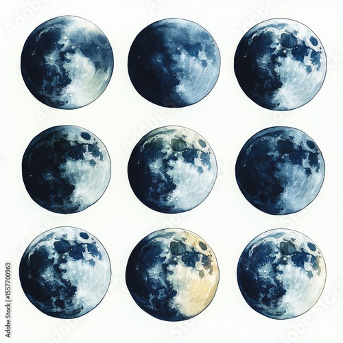 moon, phase, lunar, cycle, celestial, astronomy, orbit, space, night, sky, full, new, waxing, waning, crescent, gibbous, dark, light, shadow, earth, universe, cosmos, solar, system, body, gravity, astronomic, observation, diagram, illustration, graphic, design, print, poster, image, art, printable, wallpaper, digital, aesthetic, visual, glow, colours, blue, grey, white, shape, round
