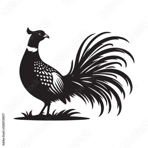 Pheasant bird Silhouette Vector Illustration, Solid White Background.