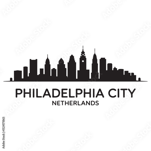 Philadelphia city skyline horizontal banner. Philadelphia city, Netherlands. Vector template for your design. Vector black silhouette. with white background