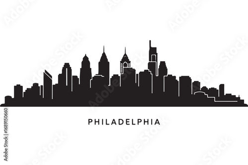 Philadelphia skyline silhouette isolated on white background, showcasing the modern architecture and iconic landmarks of the city in pennsylvania, usa