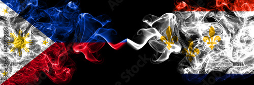 Philippines, Filipino vs United States of America, America, US, USA, American, New Orleans, Louisiana smoke flags side by side.