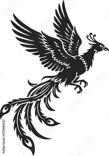 phoenix, japanese, mythical, bird, vector, illustration, traditional, legendary, creature, immortal, rebirth, renewal, majestic, elegant, ornate, feather, wing, tail, plumage, gold, colourful, vibrant, cultural, heritage, authentic, decorative, ornamental, artistic, stylised, symbolic, spiritual, divine, sacred, imperial, royals, noble, prosperity, fortune, luck, eastern, asian, classic, timeless, sophisticated, contemporary, modern, graphic