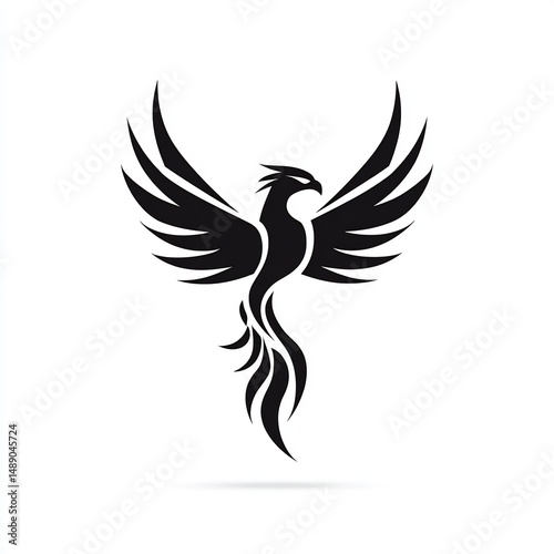 phoenix, rising, silhouette, fire, myth, vector, isolated, bird, rebirth, legend, outline, fantasy, magic, symbol, mythical, clean, powerful