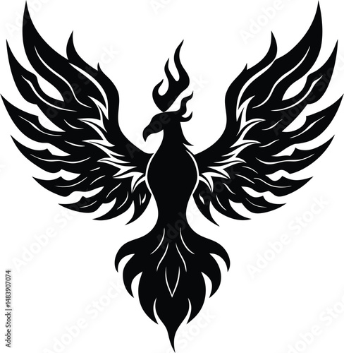phoenix, silhouette, rising, flames, bird, fire, myth, black, vector, art, design, outline, shadow, graphic, minimal, simple, modern, beauty, beautiful, elegant, creative, artistic, icon, logotype, symbol, element, decoration, pattern, wallpaper, background, aesthetic, flier, poster, print, legend, fantasy, rebirth, magic, wing, mythical, flames