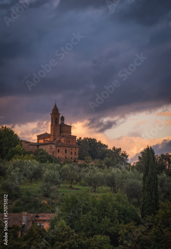Photo contains sunset view on Basilica dell Osservanza in Siena - Italy. October 2022