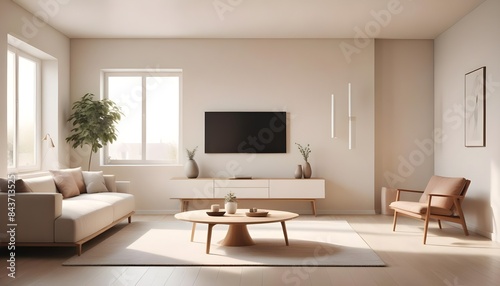 apartment, comfortable, decor, furniture, hall, home, interior, modern, pillow, render, room, sofa, wall, living, living room, three-dimensional, blue, beige, rug, pattern, pouf, bookcase, telescope, poster, vintage, rattan, indoor