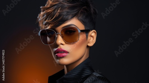 photo of a beautiful Indian woman with a stylish hairstyle and stylish glasses, close-up
