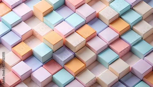 Photo of a captivating closeup reveals a mesmerizing pattern of pastelcolored cubes, meticulously arranged in a dynamic, threedimensional composition