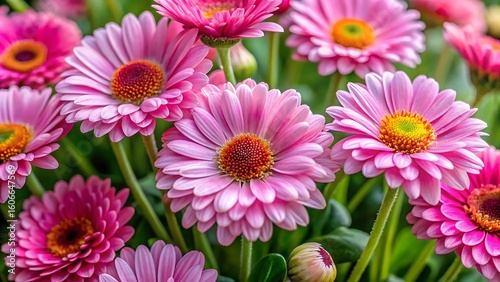 Photo of a cluster of vibrant pink gerbera daisies bloom