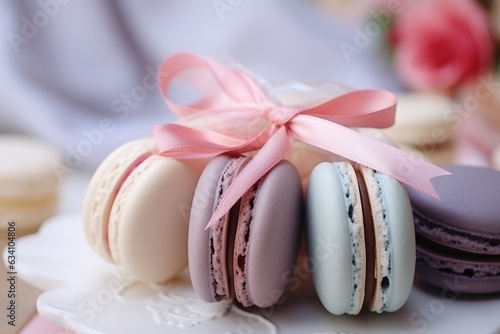 Photo of a colorful plate of delicious macarons created with Generative AI technology