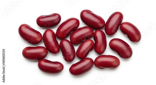 Photo of a pile of fresh red kidney beans scattered on a white background