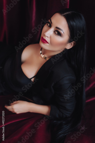 woman, portrait, fashionable, black, accessory, adult, background, beautiful, brown, casual attire, caucasian, clothes, colours, cosmetic, decoration, design, diva, elegance, eye, face, fashion, female, girl, glam, glamour, hair, hand, health, healthy, human, lady, lifestyle, lip, long hair, mascara, model, people, red lips, space, style, sweet, young, beauty