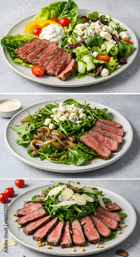 Photo of Gourmet Steak Salad Dishes with Fresh Vegetables on Plates