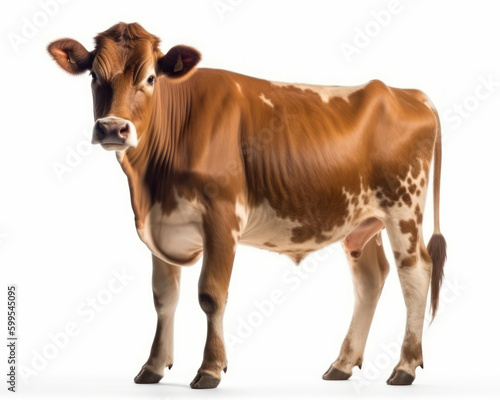 isolated, white, white background, milk production, agriculture, farm animal, farm animal, mammal, horned, heifer, pedigree, farmland, udder, dairy cow, purebred, dairy product, rural, food industry, lactation, grazing, agriculture business, pasture, bovine, cream, animal husbandry, dairy farming, generative, ai